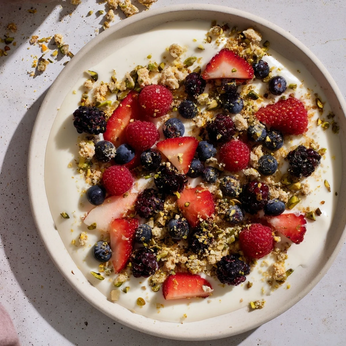 Strawberry and dark chocolate granola is the obvious choice and it's obvious because it's perfect. But pistachio with blackberry is where I discovered I'd been underestimating berry combinations my entire life—something about the earthiness of the nut against that dark fruit is almost savory in the best way. Coconut makes everything taste like a vacation, even if you're eating it at your kitchen counter on a Tuesday.
