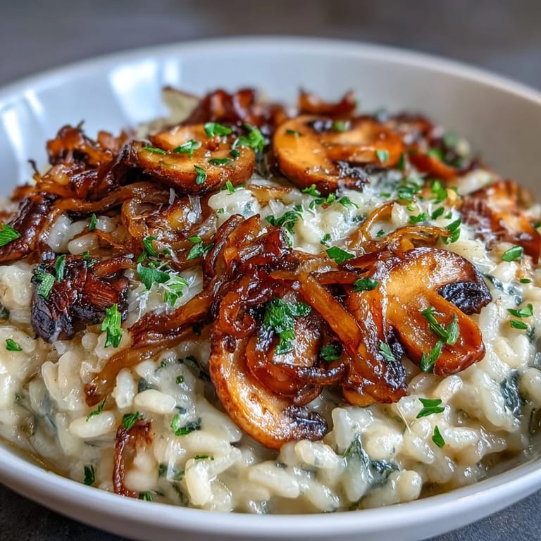 This risotto welcomes changes without losing its soul. On nights when I want something lighter, I skip the cream and add an extra splash of broth instead. If fresh thyme is on the counter, I stir in a teaspoon right at the end. Some people add a handful of spinach or peas in the last minute of cooking for color and a hint of freshness. The foundation—those caramelized onions and earthy mushrooms—stays constant, but everything else can bend to what you have and what you're craving.