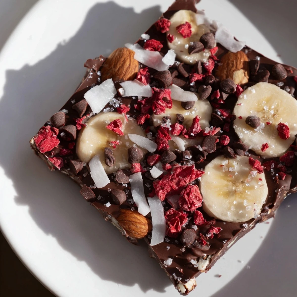 Save I discovered chocolate banana bark on a sweltering summer afternoon when my freezer felt like my best friend. My sister had left three perfectly ripe bananas on my counter with a note that just said "do something with these before they turn," and I was too hot to bake anything real. So I melted chocolate, sliced bananas, and layered them on a sheet like I was building something precious. Twenty minutes later, the whole thing had transformed into this crispy, creamy, satisfying thing that tasted like someone had taken a frozen chocolate-covered banana and made it elegant.