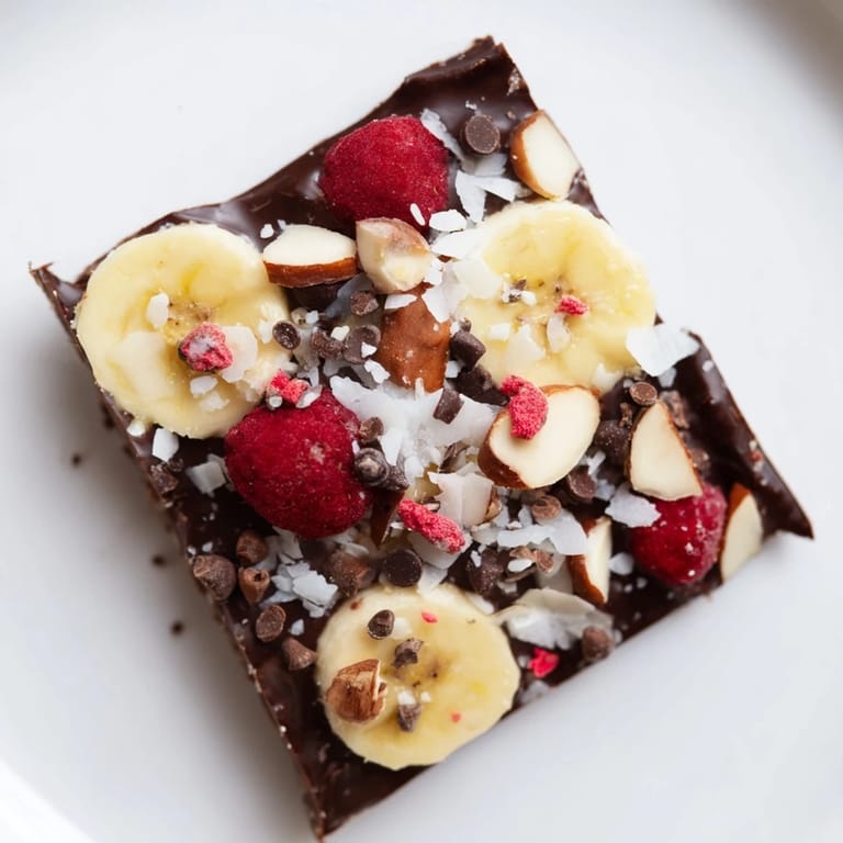 The beauty of this bark is that it doesn't require any culinary tricks or precision; it's just three textures happening at once. Frozen banana is creamy and mild, chocolate is rich and snappy when it's cold, and the toppings add crunch and flavor that keeps things interesting. Every bite feels intentional even though the whole thing came together in about fifteen minutes of actual work.