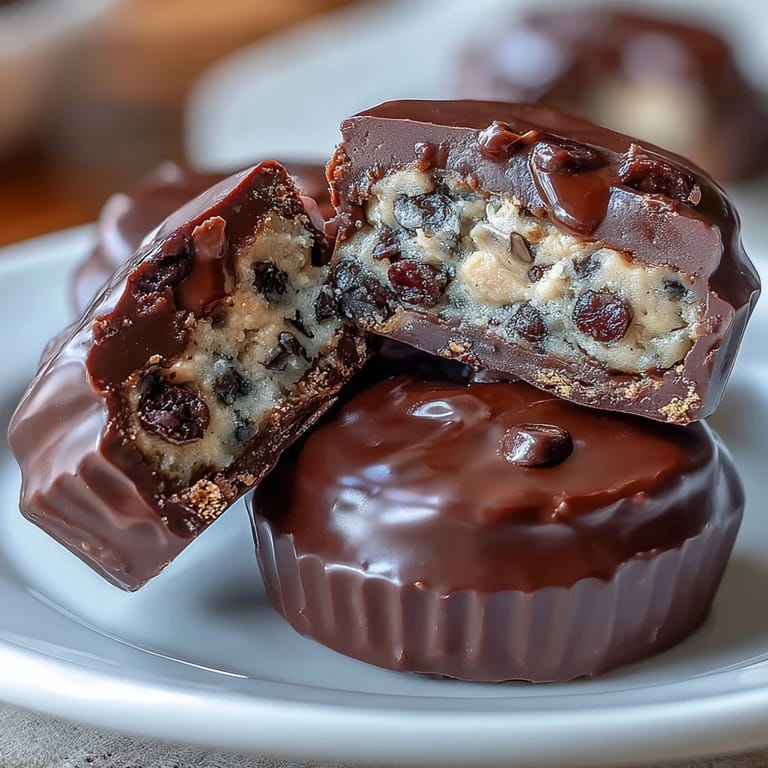 Save These homemade peanut butter cups are surprisingly simple to make, requiring just three delicious components: a chocolate shell, a creamy peanut butter layer, and that show-stopping cookie dough center. The heat-treated flour ensures the cookie dough is completely safe to eat raw, while the mini chocolate chips add delightful pockets of chocolate throughout. Whether you're treating yourself or impressing guests, these layered confections deliver bakery-quality results right from your own kitchen.