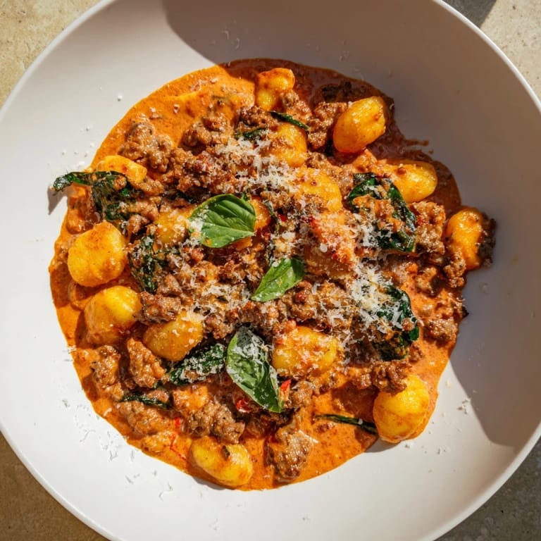 Save A comforting, rich weeknight dinner featuring pillowy gnocchi, savory Italian sausage, and a velvety tomato-cream sauce.