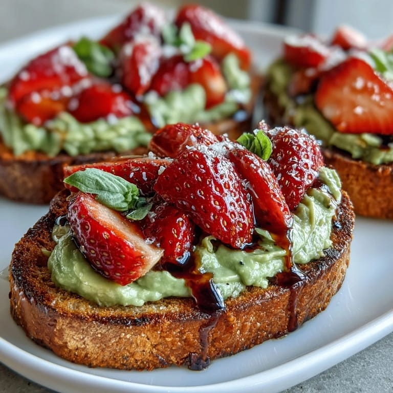 Save Brighten up your morning with this Galentines Brunch Avocado Toast with Strawberry Balsamic. This vibrant, fresh dish features creamy mashed avocado spread over golden toasted sourdough, topped with juicy strawberries and a tangy-sweet homemade balsamic glaze. It is the perfect easy-yet-sophisticated recipe for a festive brunch with friends.