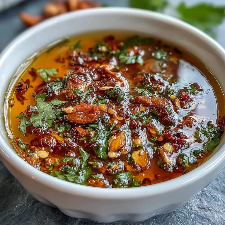 I made this sauce for the first time at my sister's dinner party, terrified I'd burn the oil or get the heat wrong. The moment I poured that shimmering oil over the garlic and chili, the whole room stopped talking—everyone was drawn to that smell. By the end of the night, people were dipping everything into it, even asking for the jar to take home. That's when I knew this wasn't just a condiment, it was a conversation starter.
