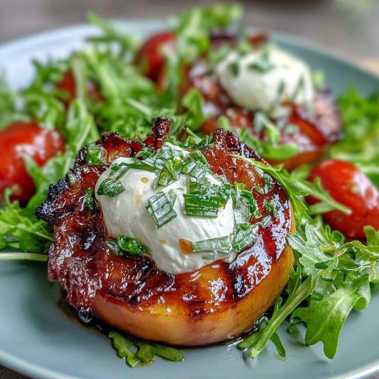 Save There's something about grilling peaches that stops you mid-conversation. A friend brought them to a summer potluck last year, golden and heavy in her hands, and suggested we throw them on the grill instead of leaving them in a fruit bowl. The kitchen filled with this caramelized sweetness mixed with smoke, and suddenly everyone abandoned their drinks to watch. That's when I understood: the best salads aren't about following rules, they're about discovering that creamy burrata and charred fruit actually belong together.