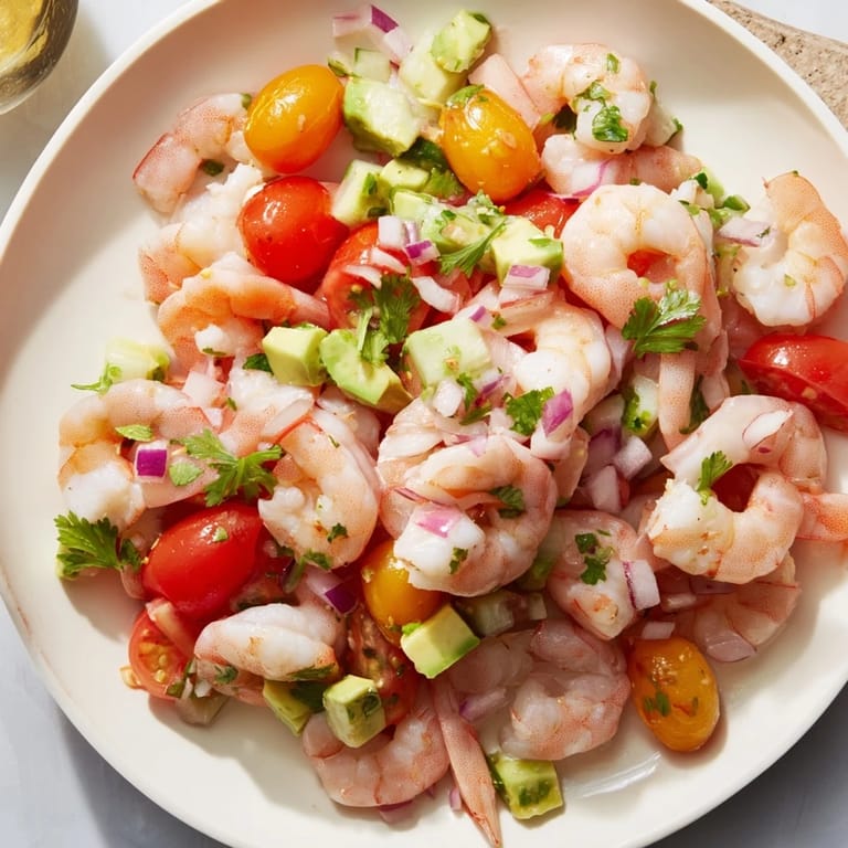 Save A vibrant, zesty appetizer featuring tender shrimp marinated in citrus juice with crisp vegetables and fresh herbs—perfect for a refreshing starter or a light meal bowl.