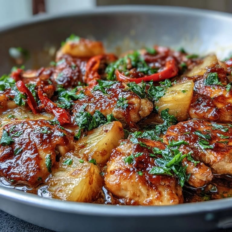 Using chicken thighs instead of breasts ensures the meat stays tender and juicy throughout the cooking process. Don't skip the browning step in the beginning—it adds crucial depth of flavor. When blooming your spices in step 5, keep stirring to prevent burning; you want them fragrant, not bitter. If your sauce seems too thin after the simmer, remove the lid for the last few minutes to allow excess liquid to evaporate. Fresh pineapple offers the best texture, but canned works well in a pinch—just be sure to drain it thoroughly.
