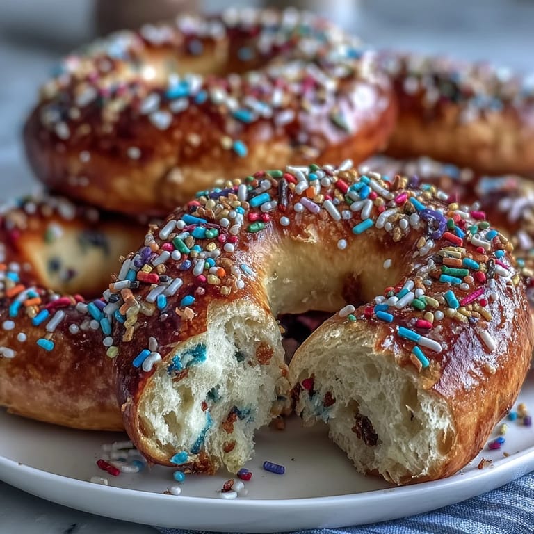 Save My nephew's birthday fell on a random Tuesday morning, and instead of the usual grocery store sheet cake, I wanted to make something he could actually eat for breakfast. That's when these rainbow sprinkle protein bagels happened—a spontaneous blend of his love for birthday cake and my need to sneak protein into every meal. The first batch came out of the oven looking almost too cheerful, and watching his face light up when he realized they were both soft and packed with protein made the whole experiment feel less like healthy cooking and more like actual celebration.