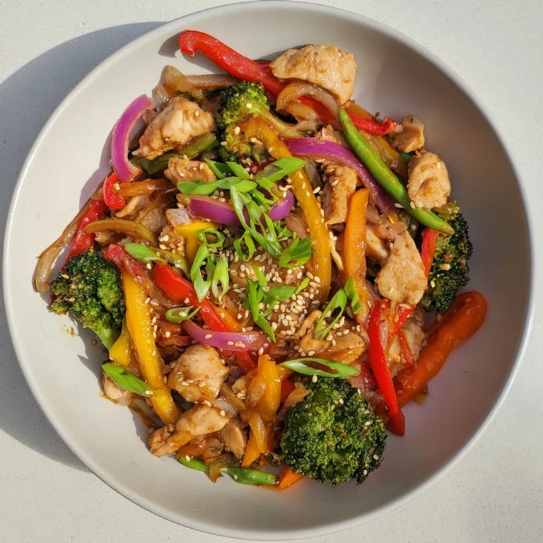 Save A vibrant, quick-cooking one-pan meal featuring tender chicken and crisp vegetables tossed in a savory stir-fry sauce—ready in less time than delivery.