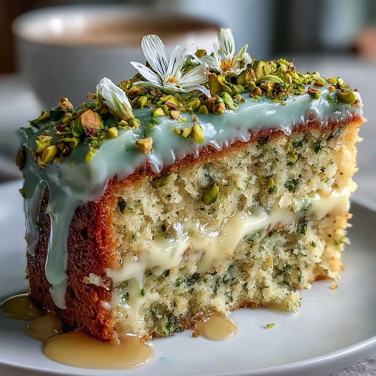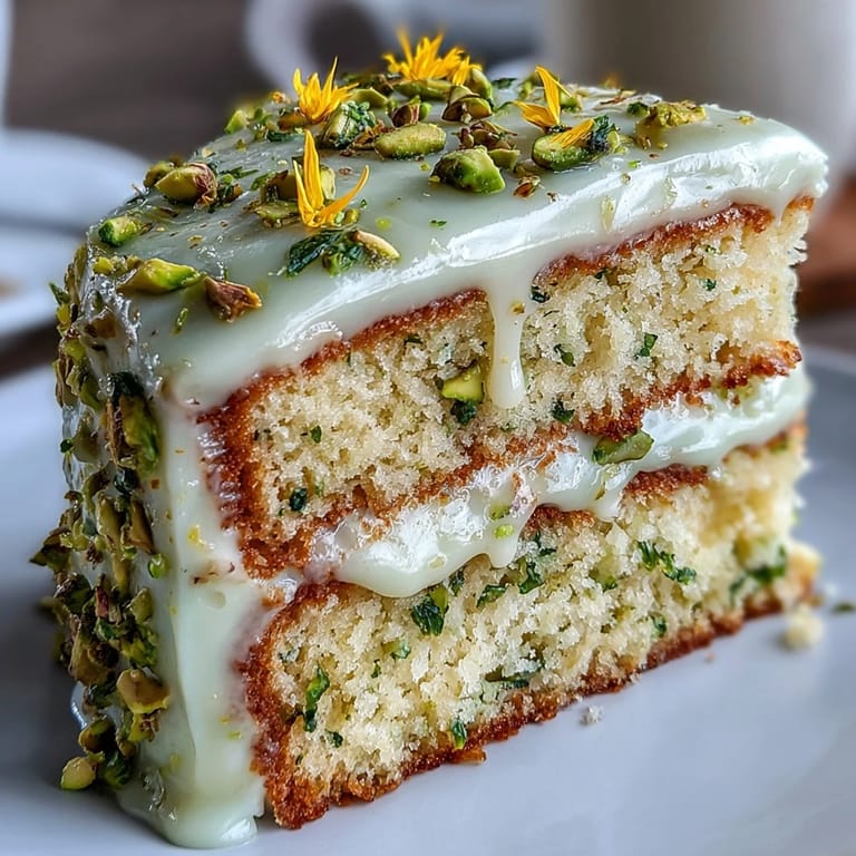 Save Sunlight poured through the kitchen window as I zested fresh lemons, their aroma instantly brightening even the rainiest spring afternoon. I didn't set out to make a showstopper, yet there I was—hands dusted with flour and flecks of pistachio—layering together what would become the star of a friend's birthday celebration. The gentle hum of my mixer nearly drowned out the burst of laughter coming from the living room, a cheerful reminder of why cakes like this matter so much. Each step felt like a small celebration, from watching fluffy batter rise in the oven to swirling the tangy lemon-pistachio frosting just-so on top. And when the first slice revealed its vibrant layers, every baker's hope for a perfect cake felt suddenly, beautifully justified.