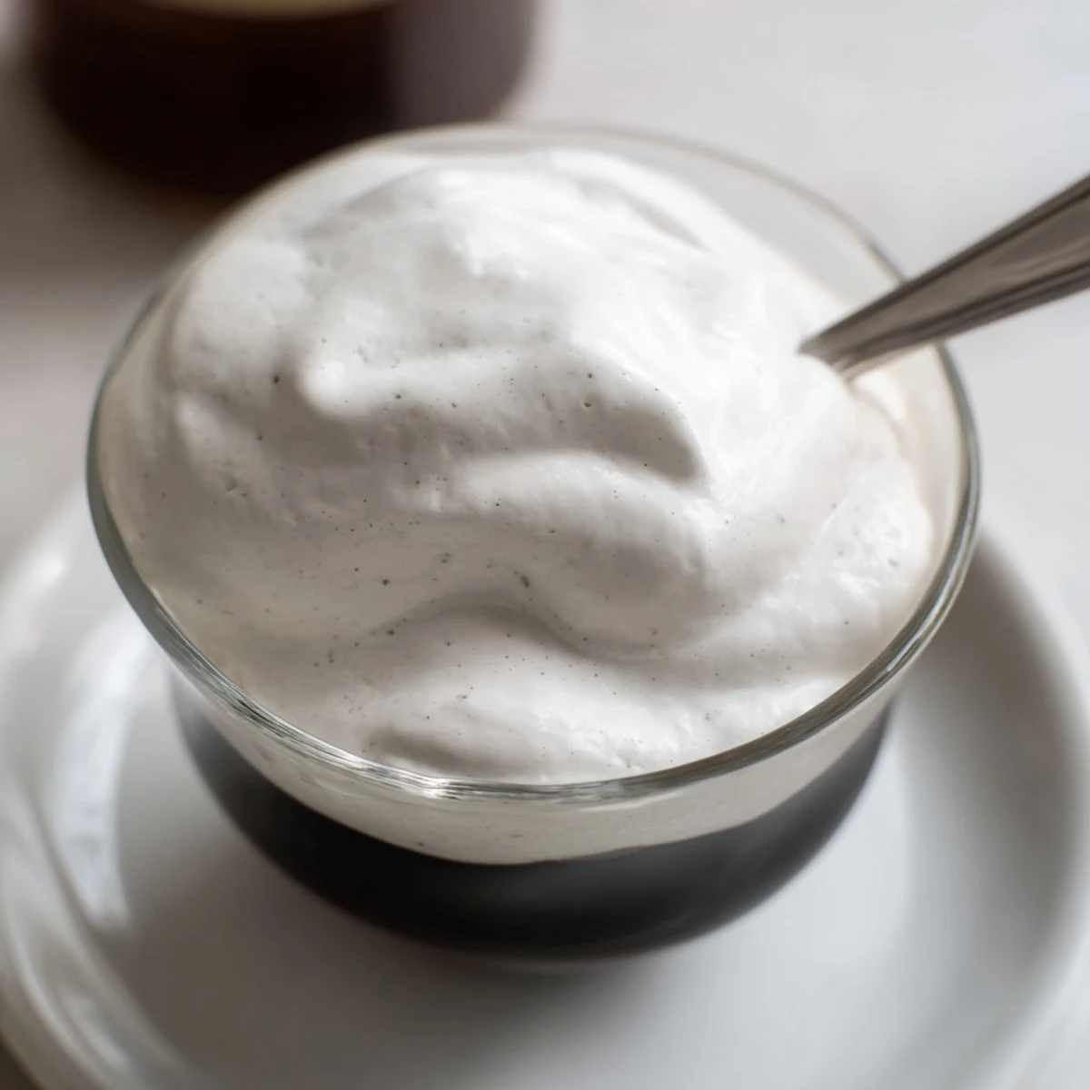 - Gently spoon the foam over your iced coffee or cold brew, letting it settle into a beautiful layer. Serve immediately while it's still at its airiest and most indulgent.