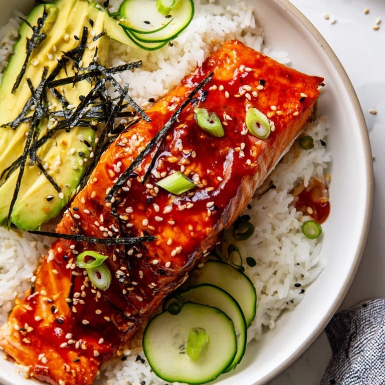 There's something about having all these components in one bowl that feels modern and intuitive; you get protein, healthy fats, fresh vegetables, and grain all in balanced bites. The sweet, spicy, umami glaze ties everything together without feeling heavy, and the contrast between warm and cool, soft and crunchy, makes every spoonful interesting. Once you make this, you'll understand why this format has become so popular—it's genuinely satisfying and feels intentional rather than thrown together.