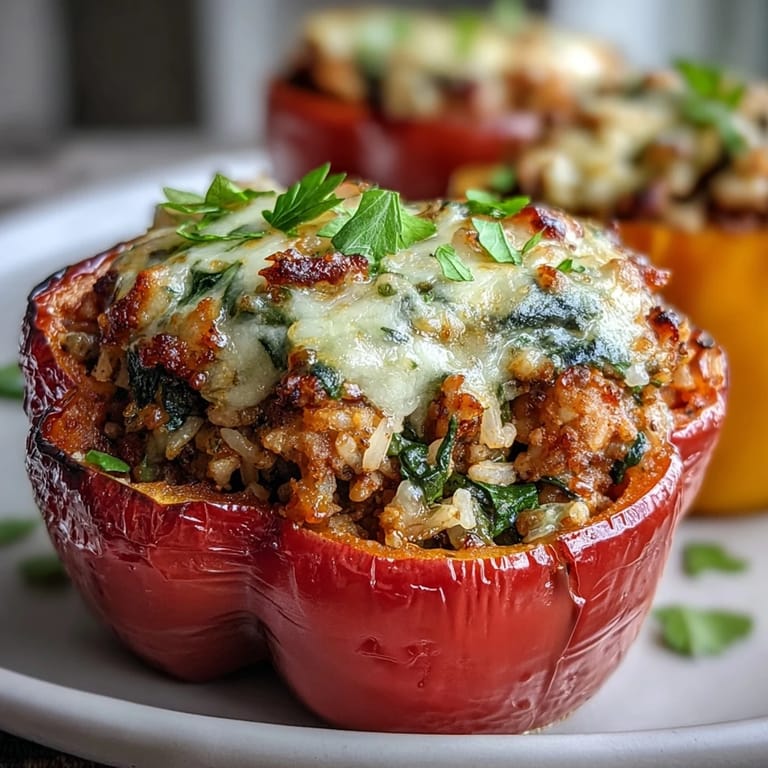 Save I discovered stuffed peppers by accident one Tuesday when my fridge was overflowing with vegetables that needed rescuing. My partner suggested ground turkey, and within minutes I was browning meat while chopping zucchini, thinking this might actually work. The smell of garlic and smoked paprika filling our small kitchen felt like a small victory, and when those colorful peppers came out of the oven, golden and tender, I knew I'd stumbled onto something that would become a regular rotation in our weeknight lineup.