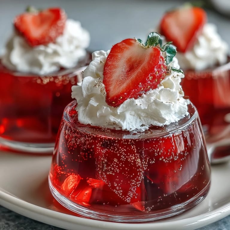 - Right before serving, top each one with a strawberry slice, a tiny dollop of whipped cream, and a sprinkle of edible glitter if you're feeling festive; serve them straight from the fridge so they're perfectly cold and firm.